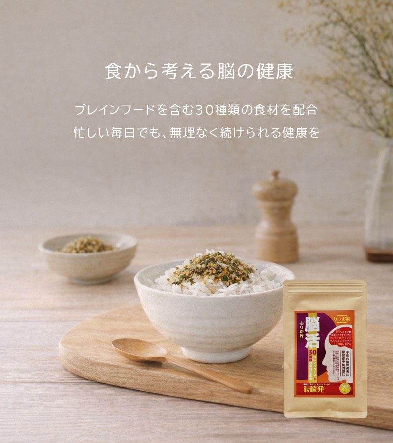 毎日のごはんに、無理なく取り入れられる「脳の健康」を考えたふりかけです。